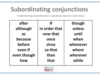 Subordinating Conjunctions Poster 1 Teaching Resources