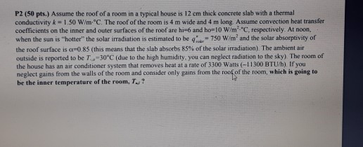 If the outer surface of roof stays at steady temperature toor 20 c and the inner surface temperature of concrete is tin 23 c.